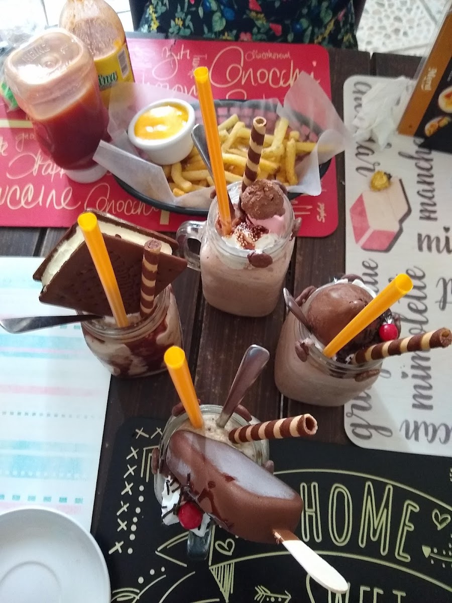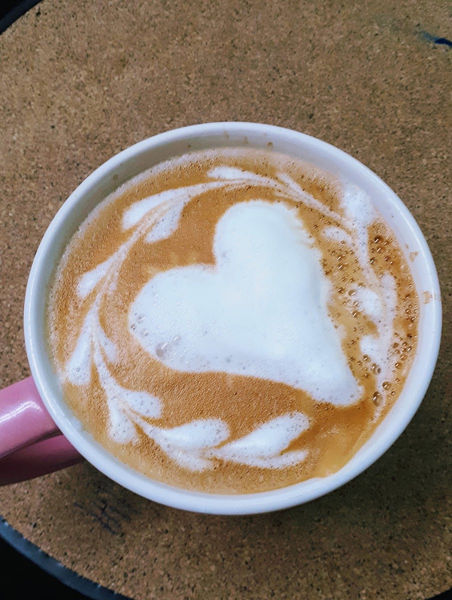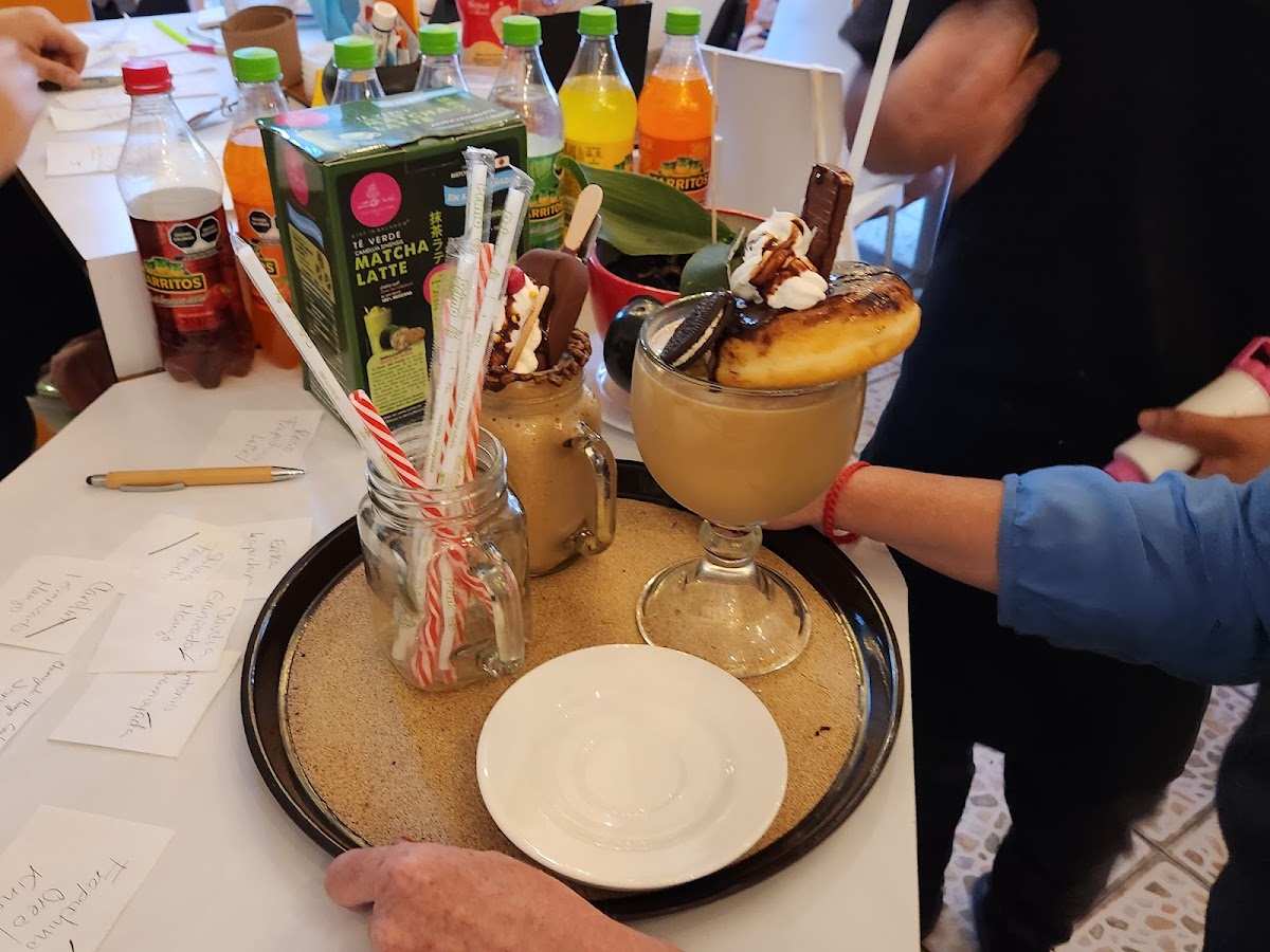 Detalles para los comensales, como un mensaje y flores en tu frappé de moka. Lo único malo, el ruido de la calle.